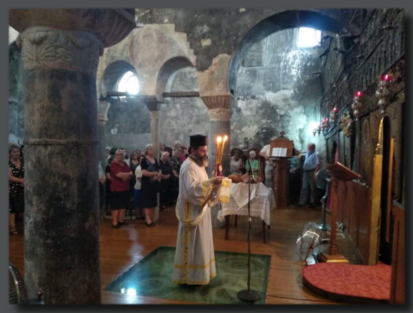 Μετά το πέρας του Εσπερινού πραγματοποιήθηκε η λιτάνευση της Ιεράς Εικόνας της Παναγίας, παρουσία πλήθους κόσμου.