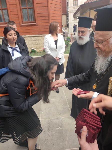 Τους μαθητές καλωσόρισε εγκάρδια ο Οικουμενικός Πατριάρχης κ.κ. Βαρθολομαίος ο οποίος συζήτησε μαζί τους και έδωσε την ευλογία του.