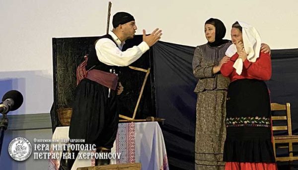 Οι συντελεστές της θεατρικής παράστασης, υπό την καθοδήγηση και την σκηνοθεσία της Ανδριάνης Γαλανού, εντυπωσίασαν το κοινό με τα κοστούμια και την εκτέλεση του θεατρικού έργου, που διαδραματίζεται στο Καινούριο Χωριό (σημ. Νεάπολη) κατά την περίοδο της Τουρκοκρατίας και εκφράζει τις ταλαιπωρίες, αλλά και την ανακούφιση των ντόπιων κατοίκων από τα δεσμά της πολύχρονης δουλείας. Να σημειωθεί ότι η πραγματοποίηση των θεατρικών παραστάσεων εντάσσεται στο πλαίσιο των επετειακών εκδηλώσεων της Ιεράς Μητροπόλεως για τα 200 χρόνια από την έναρξη της Εθνικής Παλιγγενεσίας.