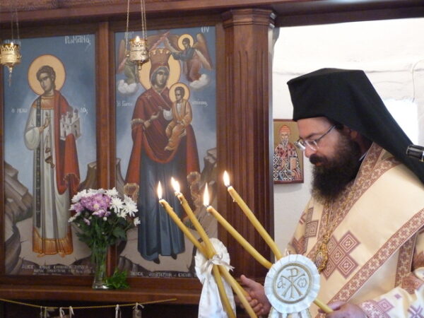 Προ της απολύσεως, ο Σεβασμιώτατος τέλεσε τον Αγιασμό επί τη ενάρξει του νέου μηνός Οκτωβρίου.