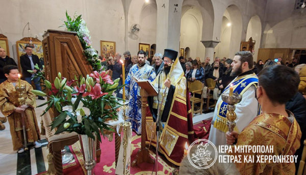 Το εσπέρας της ιδίας ημέρας, χοροστάτησε στον Εσπερινό που τελέστηκε στον πανηγυρίζοντα Ι. Ναό του Ευαγγελισμού της Θεοτόκου της πόλεως του Αγίου Νικολάου και έψαλε την τέταρτη στάση των Χαιρετισμών της Υπεραγίας Θεοτόκου.