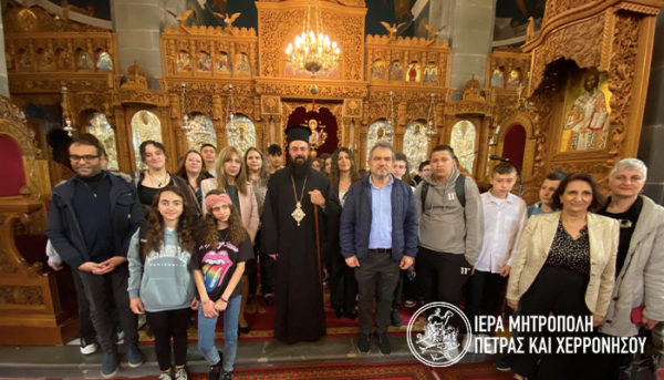 Μετά το πέρας της Τελετής, υποδέχθηκε τους Κύπριους μαθητές στον Ιερό Μητροπολιτικό Ναό της Μεγάλης Παναγίας, όπου τους ομίλησε για την ιστορία της Τοπικής μας Εκκλησίας και του Ιερού Ναού της Μεγάλης Παναγίας, ο οποίος όπως ανέφερε, κτίστηκε σε δύσκολους χρόνους από τους ευσεβείς Νεαπολίτες για να εκφράσουν την ευγνωμοσύνη τους στην Υπέρμαχο Στρατηγό του Γένους, που τους στήριξε τα δύσκολα χρόνια της σκλαβιάς και συνεχίζει να τους βοηθά σε κάθε έκφανση της ζωής τους.
