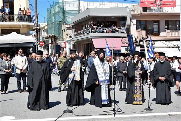 Την κυριώνυμο ημέρα της εορτής του Ευαγγελισμού της Θεοτόκου, ιερούργησε στον Ι. Ενοριακό Ναό της Ευαγγελιστρίας κωμοπόλεως Μοχού. Ακολούθως, παρακολούθησε την παρέλαση στη Νεάπολη, έδρα της Ι. Μητροπόλεως και ιστορική πρωτεύουσα του Νομού Λασιθίου, τιμώντας τοιουτοτρόπως και την συγκινητική παρουσία των Κυπρίων μαθητών, οι οποίοι παρήλασαν μαζί με τους μαθητές των εκπαιδευτικών καθιδρυμάτων της πόλεως.
