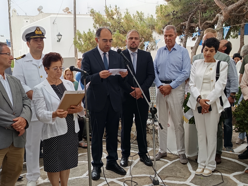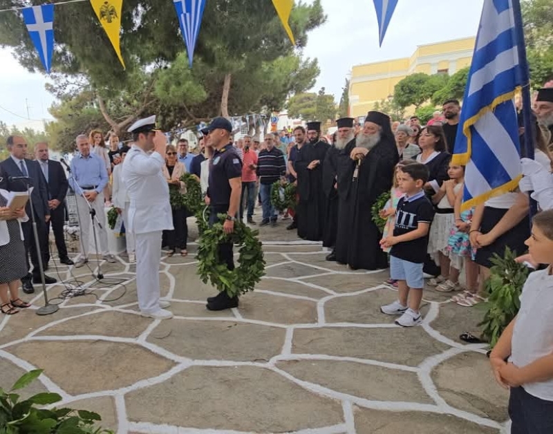 Ακολούθησαν ομιλίες και κατατέθηκαν στεφάνια από όλους τους επισήμους και τους εκπροσώπους των τοπικών αρχών και φορέων του νησιού.
