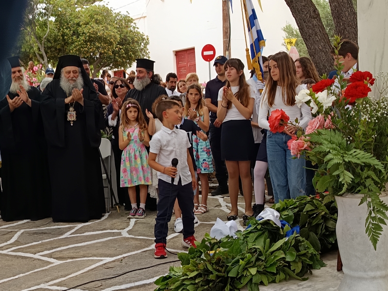Προ της Απολύσεως, ο Σεβασμιώτατος Ποιμενάρχης, προέστη του ετησίου Μνημοσύνου του Εθνομάρτυρος, με τη συμμετοχή του Βουλευτή Κυκλάδων κ. Φιλίππου Φόρτωμα, του Δημάρχου Πάρου κ. Κωνσταντίνου Μπιζά, του Επάρχου Πάρου – Αντιπάρου κ. Βαζαίου Πετρόπουλου, της Προέδρου της Τοπικής Κοινότητας, εκπροσώπων των Σωμάτων Ασφαλείας, τοπικών φορέων και συλλόγων και πλήθους κόσμου.