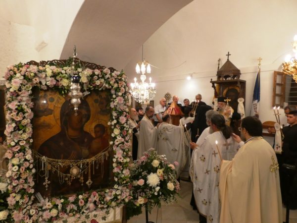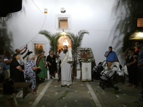 Την παραμονή της εορτής το απόγευμα, ο Σεβασμιώτατος Μητροπολίτης Παροναξίας κ. Καλλίνικος, μετέβη στα Μάρμαρα της Πάρου, όπου στον Ιερό Ναό της «Πέρας Παναγιάς», χοροστάτησε στον Εσπερινό και ευλόγησε τους προσφερθέντες άρτους.