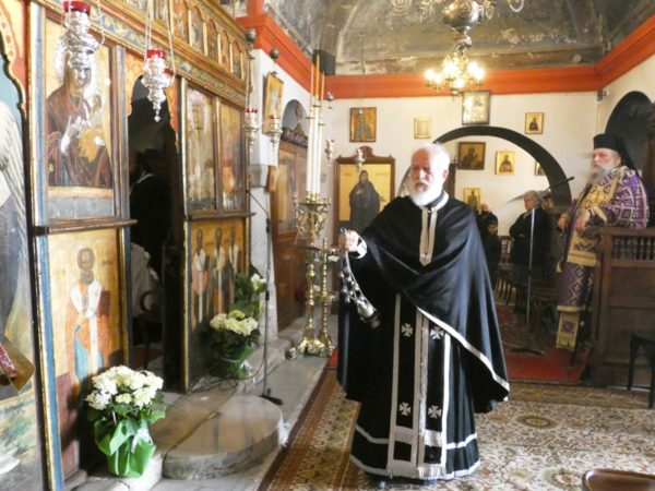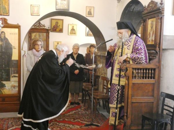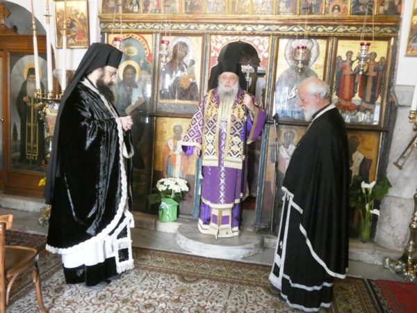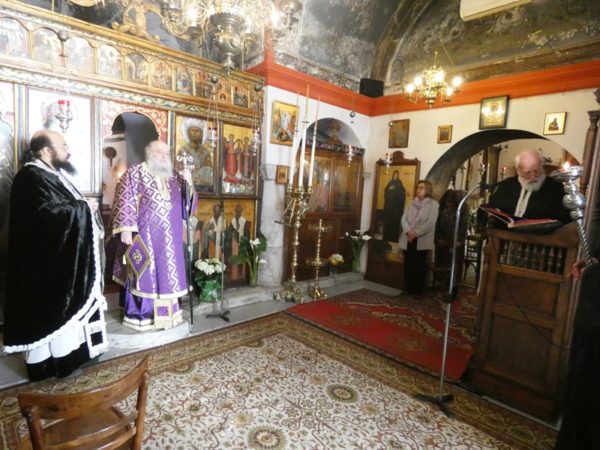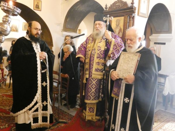 Ο Σεβασμιώτατος χοροστάτησε στην Ακολουθία του Όρθρου και των Ωρών και εν συνεχεία προεξήρχε της Προηγιασμένης Θείας Λειτουργίας, με την συμμετοχή του Ιεροκήρυκας της Ιεράς Μητρόπολης, Αρχιμ. Αρσενίου Μελισσιανού (ο οποίος και κήρυξε τον θείο λόγο) και του Εφημερίου του Ιερού Ναού και Αρχιερατικού Επιτρόπου Παροικίας-Ναούσης, Πρωτοπρ. Σπυρίδωνος Φωκιανού. Προ του «Δι’ ευχών» ο Σεβασμιώτατος απηύθυνε εόρτιες ευχές προς όλους.