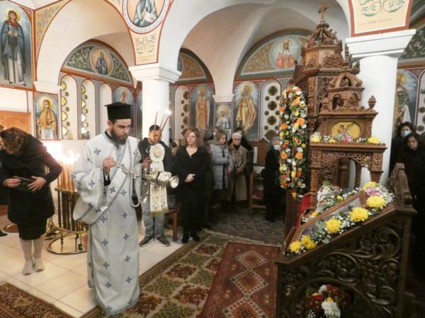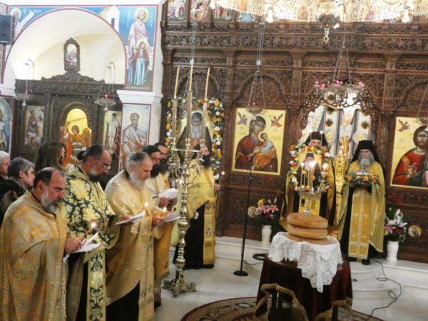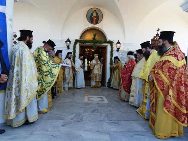 Αφού εψάλη Τρισάγιο επί του τάφου του πρωτεργάτη της ανεγέρσεως του Ιερού Ναού, μακαριστού Ιερέως Κωνσταντίνου Θεολογίτη και της μακαριστής Ηγουμένης της ως άνω Ιεράς Μονής, Αρσενίας Μοναχής, τελέσθηκε Δέηση στην είσοδο του Ιερού Ναού, στο τέλος της οποίας ο Σεβασμιώτατος ευχαρίστησε για την συμμετοχή τους τοπικούς άρχοντες με επικεφαλής τον Δήμαρχο Πάρου κ. Μάρκο Κωβαίο, τους Ιερείς και τους πιστούς, ενώ δεν παρέλειψε να συγχαρεί τον Πρόεδρο της Επιτροπής Ανεγέρσεως, Αρχιμανδρίτη Ιωάννη Χανιώτη και τους συνεργάτες του για την προετοιμασία της πανηγύρεως καθώς και τους Ιεροψάλτες κ. Ζαχαρία Ραγκούση και κ. Μάριο Κυριάκου, οι οποίοι με τους χορούς τους στελέχωσαν και λάμπρυναν τα ιερά αναλογία.