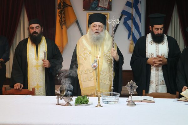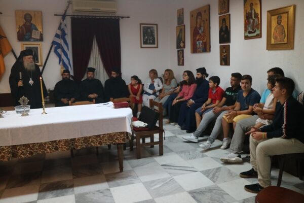 Εν συνεχεία μετέβη στην αίθουσα τελετών του Ιερού Προσκυνήματος Παναγίας Εκατονταπυλιανής Πάρου, όπου τέλεσε την Ακολουθία του Αγιασμού επί τη ενάρξει των μαθημάτων της Σχολής Βυζαντινής Μουσικής του ως άνω Ιερού Προσκυνήματος. Μετά τον Αγιασμό ο Σεβασμιώτατος απηύθυνε σύντομο χαιρετισμό και ευχές στους Καθηγητές και τους Μαθητές της Σχολής.