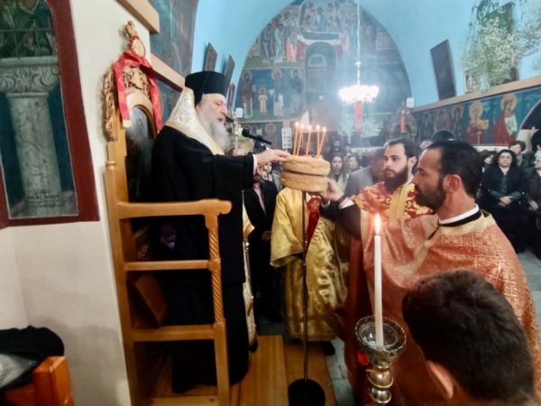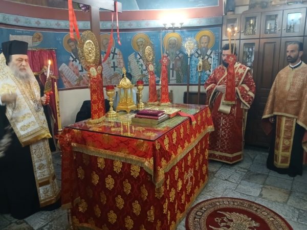 Τον Σεβασμιώτατο Ποιμενάρχη πλαισίωσαν ο οικείος εφημέριος Οικ. π. Μιχαήλ Φραγκουλόπουλος, ο Πρεσβ. π. Παναγιώτης Σιαχάμης ο οποίος κήρυξε τον θείο λόγο και ο Διάκονος π. Δαυίδ Καρυτινός.