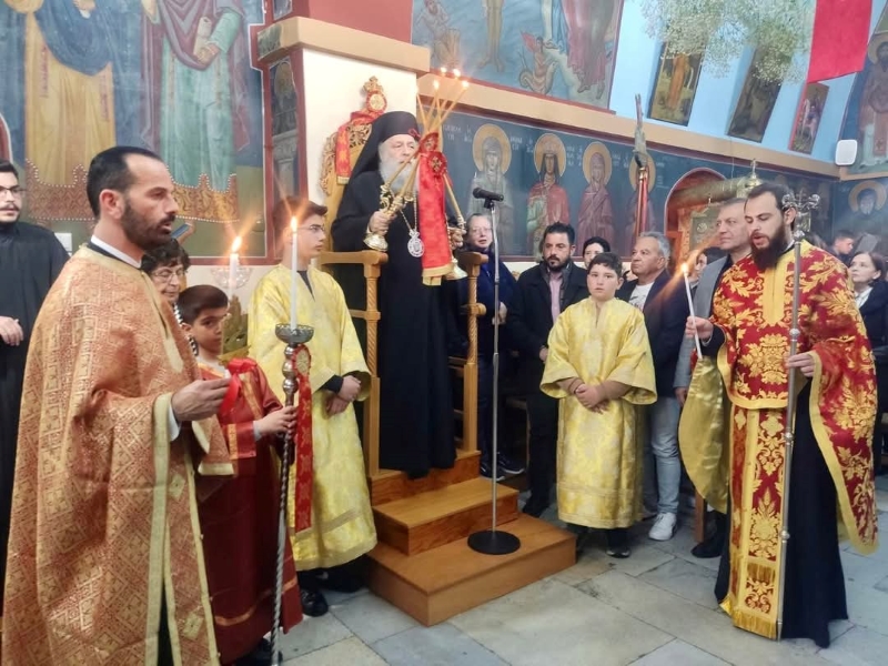 Ο Σεβασμιώτατος Μητροπολίτης Παροναξίας κ. Καλλίνικος, μετέβη, την Τρίτη του Πάσχα, στον Ιερό Ενοριακό Ναό Αγίου Γεωργίου Κινιδάρου Νάξου, όπου και χοροστάτησε στην Ακολουθία του Πανηγυρικού Εσπερινού και ευλόγησε τους προσφερθέντες άρτους.