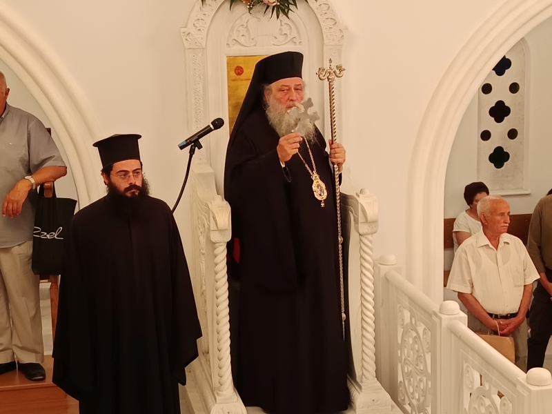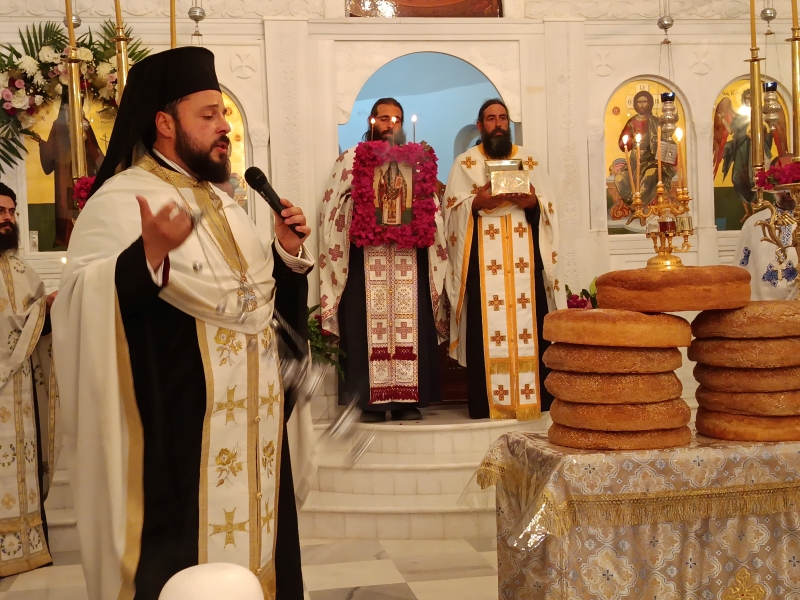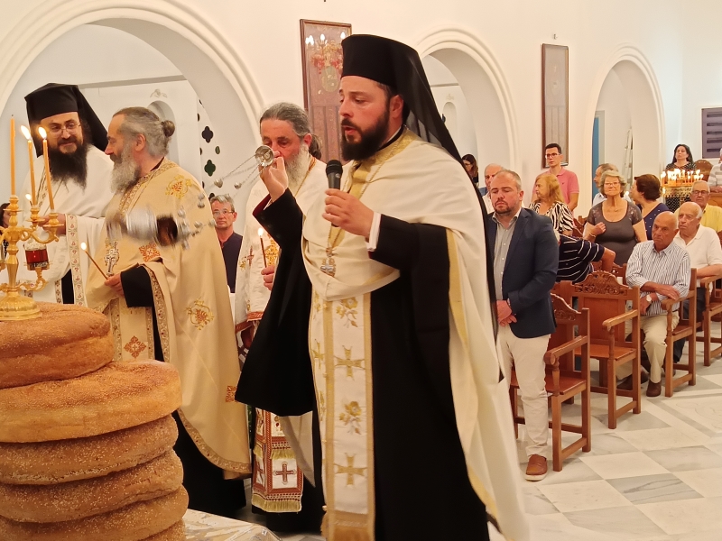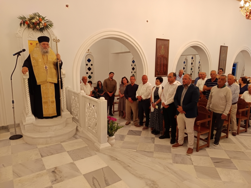 Τον Σεβασμιώτατο Ποιμενάρχη πλαισίωσαν ο Πρωτοσυγκελλεύων της Ιεράς Μητροπόλεως Αρχιμ. Δωρόθεος Βενετσανόπουλος, ο Ιεροκήρυκας Αρχιμ. Αρσένιος Μελισσιανός (ο οποίος κήρυξε και τον θείο λόγο), ο Ηγούμενος της Ι.Μ. Λογγοβάρδας Αρχιμ. Νικόδημος, αλλα και πλήθος ιερέων της Νήσου.