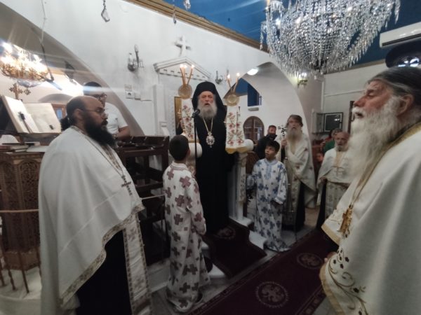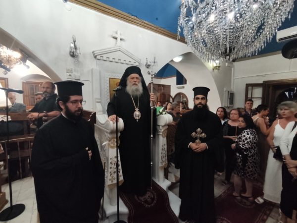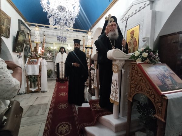 Τον Σεβασμιώτατο πλαισίωσαν ο Ιεροκήρυκας της Ιεράς Μητροπόλεως Αρχιμ. Αρσένιος Μελισσιανός, ο Γενικός Αρχιερατικός Επίτροπος Πρωτοπρ. π. Κωνσταντίνος Κύλης, ο Αρχιερατικός Επίτροπος Βίβλου Πρωτοπρ. π. Εμμανουήλ Σκουλάτος, ο Πρωτοπρ. π. Νικόλαος Ρώτας, ο Οικ. Σταυροφόρος π. Νικόλαος Βασιλάκης, ο οικείος εφημέριος Πρωτοπρ. π. Δημήτριος Φερεντίνος, ο Οικ. π. Νικόλαος Βλασερός, ο Αρχιδιάκονος π. Νεκτάριος Σκουλάτος και ο Διακ. π. Δαυίδ Καρυτινός.