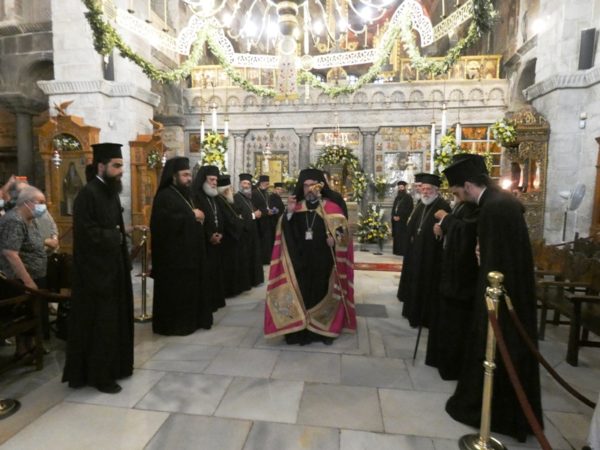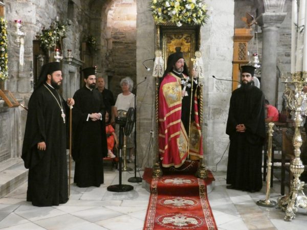 Στην Ακολουθία χοροστάτησε ο Θεοφιλέστατος Επίσκοπος Χριστουπόλεως κ. Εμμανουήλ, συγχοροστατούντων των Σεβασμιωτάτων Μητροπολιτών Φιλαδελφείας κ. Μελίτωνος, Κατάρων κ. Μακαρίου, του Θεοφιλεστάτου Επισκόπου Κεράμων κ. Βαρθολομαίου και του Σεβασμιωτάτου Ποιμενάρχου κ. Καλλινίκου.