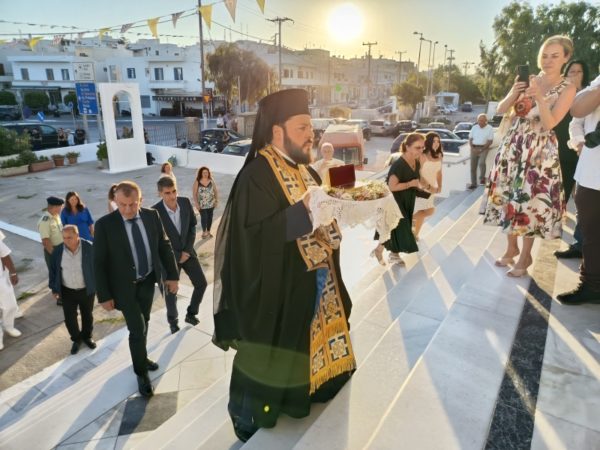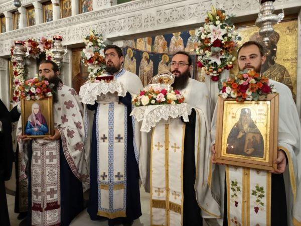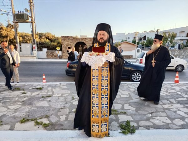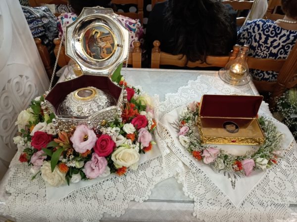 Προ της ενάρξεως του Εσπερινού, στον αύλειο χώρο του Ιερού Ναού πραγματοποιήθηκε η υποδοχή αποτμήματος του Ιερού Λειψάνου της προσφάτως αγιοκαταταχθείσης Οσίας Γαβριηλίας της Κωνσταντινουπολιτίσσης, το οποίο εκόμισε από τη νήσο Λέρο ο Πρωτοσυγκελλεύων της Ιεράς Μητροπόλεως Παροναξίας, Αρχιμ. Δωρόθεος Βενετσανόπουλος, με την ευλογία και φροντίδα του οικείου Μητροπολίτου Σεβ. Λέρου, Καλύμνου και Αστυπαλαίας κ. Παϊσίου.