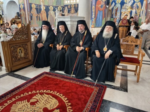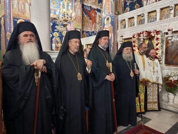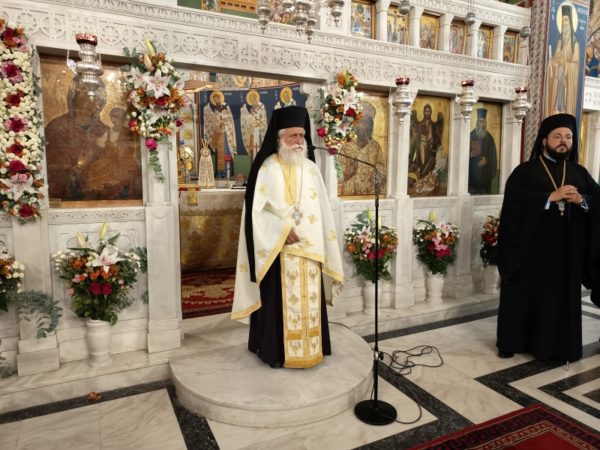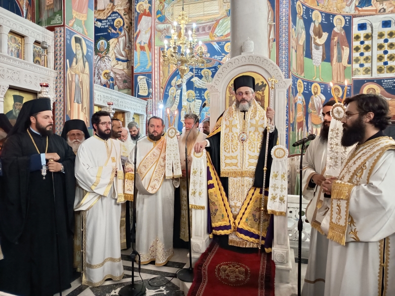 Κατόπιν, ακολούθησε Μέγας Πανηγυρικός Εσπερινός, χοροστατούντος του Σεβασμιωτάτου Μητροπολίτου Παραμυθίας, Φιλιατών, Γηρομερίου και Πάργης κ. Σεραπίωνος (ο οποίος και κήρυξε τον θείο λόγο μετά την σχετική προσφώνηση του οικείου Μητροπολίτου), συμπροσευχομένων των Σεβ. Μητροπολιτών Νέας Κρήνης και Καλαμαριάς κ. Ιουστίνου, Καλαβρύτων και Αιγιαλείας κ. Ιερωνύμου, των Θεοφιλ. Επισκόπων Νιτρίας κ. Νικοδήμου, Κεράμων κ. Βαρθολομαίου και του Σεβ. Ποιμενάρχου μας, Μητροπολίτου Παροναξίας κ. Καλλινίκου.