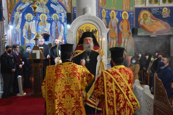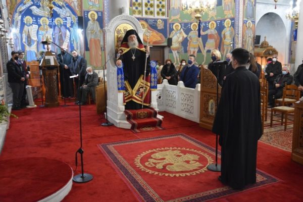 Προ του «Δι’ ευχών» ο Σεβασμιώτατος απηύθυνε ευχές προς όλους και λαμβάνοντας αφορμή από την επικρατούσα κατάσταση στην Ουκρανία μεταξύ άλλων τόνισε ότι εμείς ως Εκκλησία δεν μπορούμε να εξετάζουμε την πολιτική κατάσταση μιας Χώρας, ημί μόνο να διαπιστώνουμε και να κλαίμε, διότι χάνονται από την βία ανθρώπινες ζωές και φέτος που συμπληρώνονται 100 χρόνια από την δική μας Μικρασιατική καταστροφή, που έφερε το κύμα των προσφύγων από την Μικρά Ασία, βλέπουμε να επαναλαμβάνονται τα γεγονότα αυτά στην Ουκρανία και ευχόμαστε σύντομα με την Χάρη του Θεού να καταπαύσει ο πόλεμος, να επιστρέψουν οι άνθρωποι στα σπίτια τους και να επικρατήσει στην περιοχή αυτή του κόσμου αλλά και στις καρδιές όλων των ανθρώπων η ειρήνη.