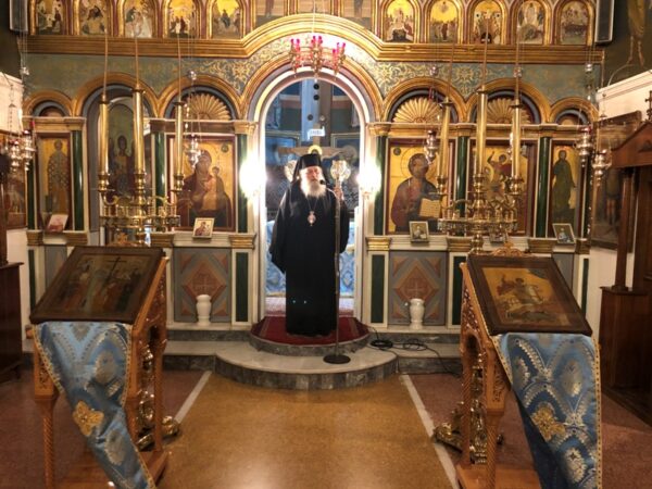 Το απόγευμα της ίδιας ημέρας χοροστάτησε στον Εσπερινό και εν συνεχεία στην Ακολουθία της Ιεράς Παρακλήσεως και κήρυξε τον Θείο Λόγο στον Ιερό Ενοριακό Ναό Αγίου Γεωργίου Αγκαιριάς Πάρου.