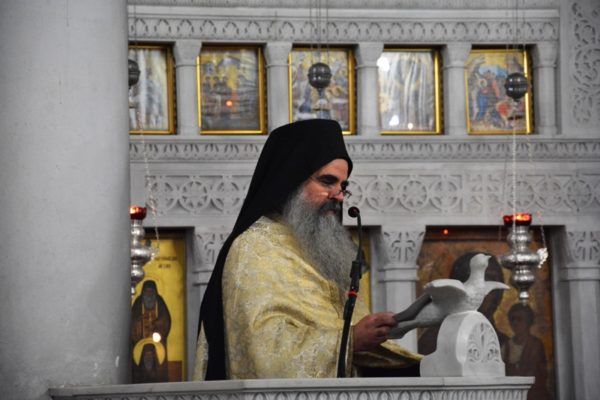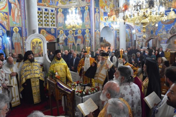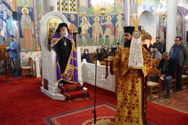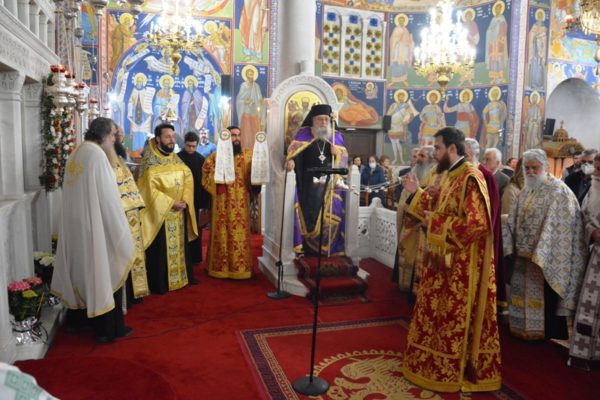 Προ του «Δι’ ευχών» ο Σεβασμιώτατος απευθυνόμενος προς τον ιερό κλήρο και τους πιστούς, βαθύτατα συγκινημένος ανέφερε μεταξύ άλλων, ότι τελούμε απόψε με πόνο ψυχής για τα δεκάδες θύματα του τραγικού σιδηροδρομικού δυστυχήματος, που σκόρπισε ανείπωτη θλίψη και βύθισε σε απύθμενο πένθος τις οικογένειες τους, αλλά και όλη μας την πατρίδα. Μοναδική παρηγοριά σε αυτές τις οριακές καταστάσεις δοκιμασίας μπορούμε να βρούμε μόνο κοντά στον Χριστό μας και την Παναγία μας και μέσα στην Αγία μας Εκκλησία «συν πάσι τοις αγίοις» που είναι και η καλύτερη παρηγοριά της ψυχής μας.