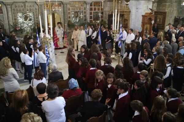 Εν συνεχεία προέστη της Δοξολογίας επί τη Εθνική Επετείω της 28ης Οκτωβρίου 1940. Τον πανηγυρικό της ημέρας εκφώνησε ο κ. Χαράλαμπος Μαλινδρέτος, Πρόεδρος των Σχολικών Επιτροπών του Δήμου Πάρου και καθηγητής του ΕΠΑ.Λ. Πάρου.