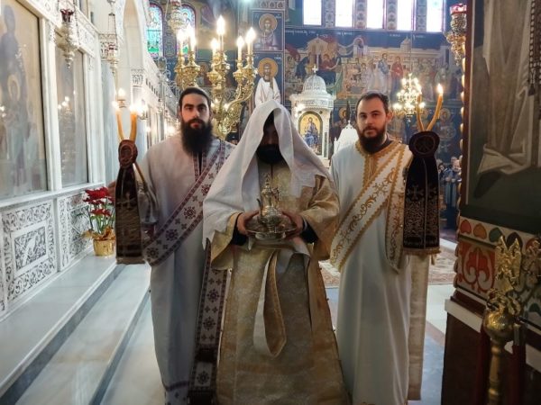Στη Θεία Λειτουργία συμμετείχαν ο Πρωτοσυγκελλεύων της Ιεράς Μητροπόλεως, Αρχιμ. π. Δωρόθεος Βενετσανόπουλος, οι Ιεροκήρυκες Αρχιμ. π. Αρσένιος Μελισσιανός και Αρχιμ. π. Χρυσόστομος Σταυράκης (Ηγούμενος της Ι.Μ. Φανερωμένης Νάξου) ο οποίος έδωσε και την κανονική συμμαρτυρία στον χειροτονούμενο, ο Γενικός Αρχιερατικός Επίτροπος της Μητροπόλεως Πρωτοπρ. π. Κωνσταντίνος Κύλης, ο Πρωτοπρ. π. Νεκτάριος Αλεξόπουλος, οι Διάκονοι π. Νεκτάριος Σκουλάτος και π. Παναγιώτης Σιαχάμης καθώς και ιερείς διαφόρων Ιερών Μητροπόλεων του λεκανοπεδίου.