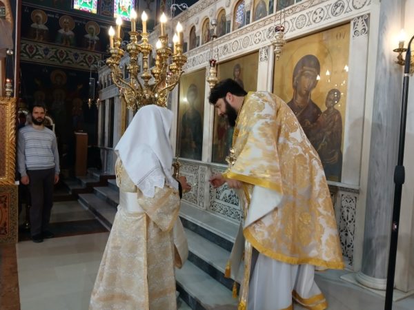Ο Σεβασμιώτατος Μητροπολίτης Παροναξίας κ. Καλλίνικος μετέβη στον Ιερό Ενοριακό Ναό Αγίας Σοφίας Ψυχικού, όπου χοροστάτησε χθες στον Όρθρο και προεξήρχε της Θείας Λειτουργίας, συλλειτουργούντος του Θεοφιλεστάτου Επισκόπου Κεράμων κ. Βαρθολομαίου.