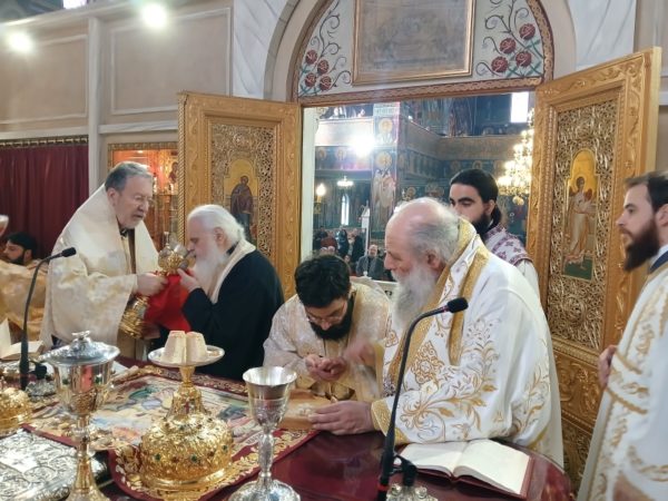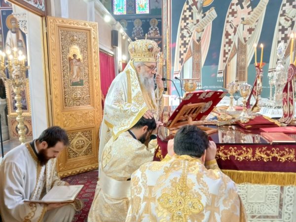 Κατά την διάρκεια της Θείας Λειτουργίας ο Σεβασμιώτατος τέλεσε την εις Διάκονον Χειροτονία του προαναφερθέντος Υποδιακόνου. Μετά την προσφώνηση του υποψηφίου, αντιφώνησε ο Σεβασμιώτατος, ο οποίος αφού ευχαρίστησε τον Μακαριώτατο Αρχιεπίσκοπο Αθηνών για την ευγενώς και προθύμως παραχωρηθείσα κανονική άδεια και ευλογία του, τόνισε στον χειροτονούμενο, την τρισμέγιστη τιμή και αξία της Ιερωσύνης, που συγχρόνως καθίσταται τεραστία ευθύνη ενώπιον του Θεού και των ανθρώπων. Ο Σεβασμιώτατος προέτρεψε τον χειροτονούμενο να διακονεί την Εκκλησία με τρόπο θυσιαστικό και να αντλεί δύναμη από το Άγιο Θυσιαστήριο. Επίσης επεσήμανε την σπουδαιότητα του έργου το οποίο επιτελεί ο κληρικός εντός της σύγχρονης κοινωνίας η οποία ολοένα και περισσότερο τείνει να αποστασιοποιείται από τις πατροπαράδοτες αξίες της πίστεως και τα ιδανικά του γένους μας.