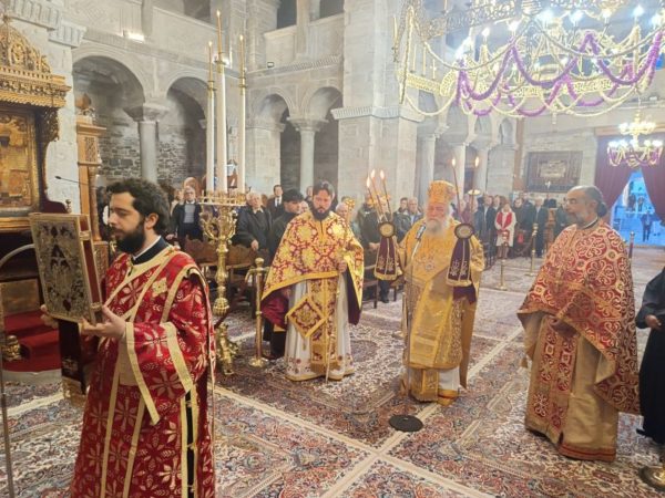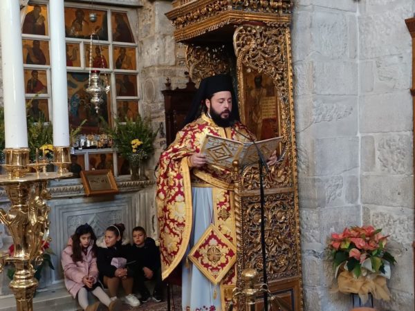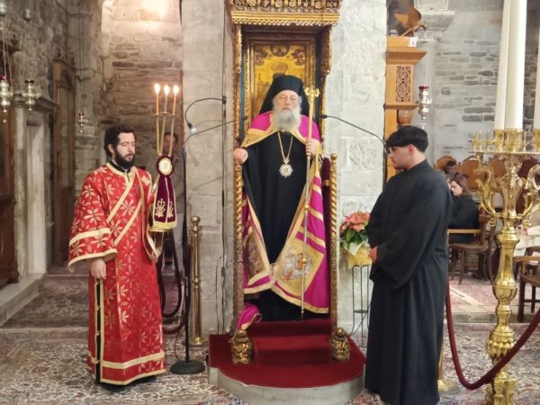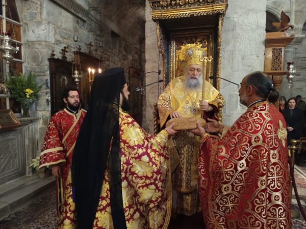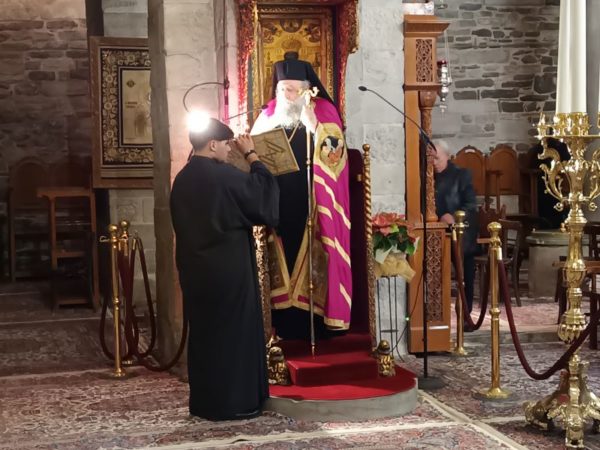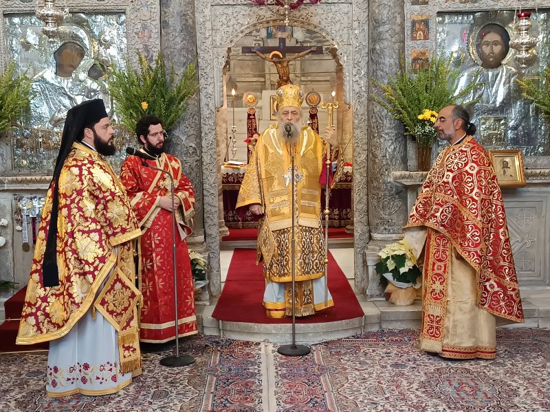 Στο τέλος της Θείας Λειτουργίας ο Σεβασμιώτατος απηύθυνε προς τους κληρικούς και τους πιστούς πατρικές εόρτιες ευχές και εν συνεχεία διένειμε το αντίδωρο.