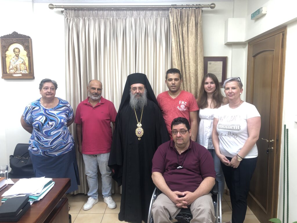 Ο Πρόεδρος κ. Αντώνιος Χαροκόπος και τα υπόλοιπα μέλη του Δ.Σ. έλαβαν την ευχή του Σεβασμιωτάτου για το νέο ξεκίνημα και συζήτησαν για θέματα που αφορούν στους ανθρώπους με αναπηρία. Συμφωνήθηκε δε να προωθηθεί η περαιτέρω συνεργασία και να διαμορφωθεί από κοινού πρωτόκολλο συνεργασίας, προκειμένου να προωθηθούν ενέργειες για την βελτίωση της ποιότητος της ζωής των ανθρώπων με αναπηρία, όπως προσβασιμότητα, ευαισθητοποίηση της κοινωνίας κ.λ.π.