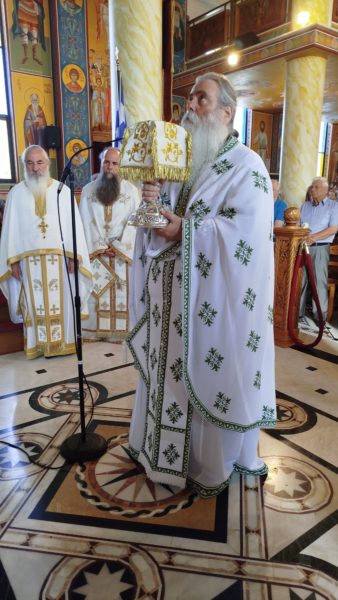 Ανήμερα της Εορτής, χοροστάτησε στον Όρθρο και ετέλεσε την Θεία Λειτουργία, ο Σεβασμιώτατος Μητροπολίτης Πατρών κ. Χρυσόστομος και μίλησε αναφερθείς στο κήρυγμά του στην Αγία Μαρίνα και στα μηνύματα τα οποία πρέπει να λαμβάνωμε τόσον από την ζωή της Μεγαλομάρτυρος, όσο και από την ζωή όλων των Αγίων μας.