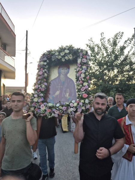 Μετά το πέρας του Εσπερινού, λιτανεύθησαν η Ιερά Εικώνα της Αγίας και απότμημα των ιερών της Λειψάνων, με την συμμετοχή πλήθους ευσεβών Χριστιανών.