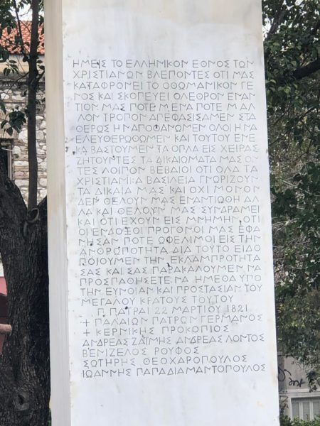Οι μεγάλες ένδοξες στιγμές του Γένους ξαναζωντάνεψαν χθες στην Πάτρα κατά την αναπαράσταση της ορκωμοσίας των αγωνιστών η οποία έγινε στις 25 Μαρτίου του 1821, από τον θρυλικό Ιεράρχη των Πατρών, Γερμανό τον Εθνεγέρτη, στην Πλατεία, Αγίου Γεωργίου.