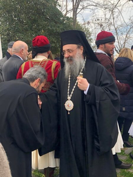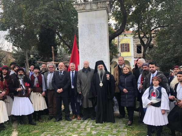 Μετά την ομιλία του Σεβασμιωτάτου, έγινε κατάθεση στεφάνων και εψάλη ο Εθνικός Ύμνος.