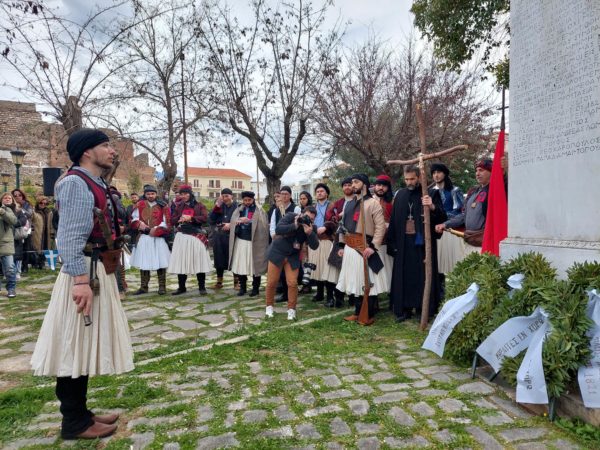 Συγκίνησε με την προσλαλιά του ο Πρόεδρος του Συλλόγου «Μωραίτες εν Χορώ» Σπυρίδων Τσοκανάς, όπως και ο νέος που παρουσίασε τον ρόλο του Παλαιών Πατρών Γερμανού και ανέγνωσε τον όρκο και την Διακήρυξη (Μανιφέστο) του Εθνεγέρτου Ιεράρχου προς τις ξένες δυνάμεις της εποχής εκείνης.