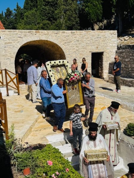 ● Ανήμερα της Εορτής, ο Σεβασμιώτατος, ανήλθε στο Ασκητήριο του Οσίου Ιωακείμ και ετέλεσε την Θεία Λειτουργία και εκήρυξε τον θείο λόγο. Εν συνεχεία ελιτανεύθησαν οι ιερές Εικόνες της Παναγίας Νοτενιώτισσας και του Οσίου Ιωακείμ, ως και τα χαριτόβρυτα του Οσίου Λείψανα, από το Ασκητήριόν του, έως το Μοναστήρι.