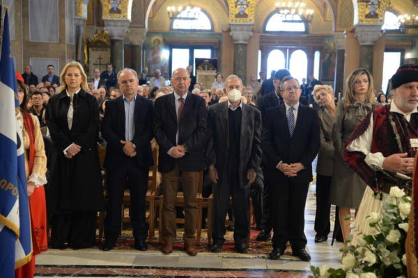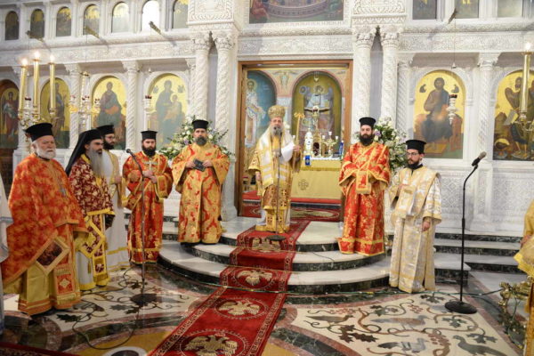 Αρχιερατική Θεία Λειτουργία τελέσθηκε, σήμερα, στον Ιερό Ναό του Πολιούχου των Πατρών, Αγίου Αποστόλου Ανδρέου, προεξάρχοντος του Μητροπολίτη Πατρών κ. Χρυσοστόμου, ο οποίος έκανε συγκινητική αναφορά στην θυσία των 10.000 χιλιάδων και πλέον Πατρέων, σφαγιασθέντων το 1821.