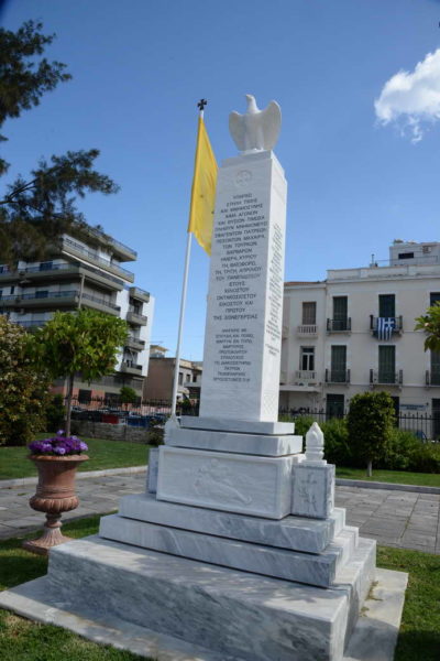 Αὐτό τό γεγονός ἀναδεικνύομε, ὡς ἒχομε χρέος, ἒναντι τῶν μαρτύρων καί ἡρώων Πατρέων τῶν πεσόντων μαχαίρᾳ καί ἰκριώμασι καί σταυροῖς ὑπό τῶν Τούρκων, ἀπό τῆς Κυριακῆς τῶν Βαΐων, 3 Ἀπριλίου 1821, ἓως καί τῆς Μεγάλης Παρασκευῆς τοῦ ἒτους ἐκείνου.