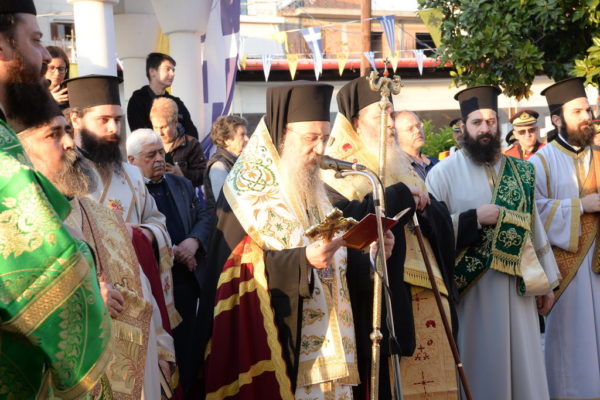 Ευτυχώς που η Ιστορία, συνέχισε ο Σεβασμιώτατος, με τον δικό της αδέκαστο τρόπο, μαρτυρεί στο διάβα του χρόνου, ότι ήτο γραφτό της λευτεριάς της Ελλάδος να περάση και να λιβανιστή στους θόλους των Εκκλησιών και των Ιερών Μονών μας, να πορφυρωθή από τα αίματα Ιερομαρτύρων και Εθνομαρτύρων, ανθρώπων πάσης κοινωνικής τάξεως και ηλικίας, ώστε να μπορούμε εμείς οι επιγενόμενοι με πάσαν άνεση, ακόμη και να αμφισβητούμε τον αγιασμένο αγώνα τους.