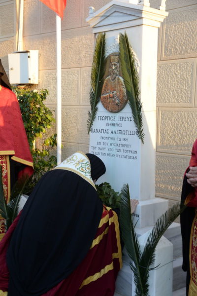 Ο Ιεράρχης ανέγνωσε τα σχετικά έγγραφα, από τα Γενικά Αρχεία του Κράτους, τα οποία πιστοποιούν την θυσία του Εθνομάρτυρος Ιερέως Γεωργίου και σημείωσε ότι από της ελεύσεώς του στην Πάτρα όρισε, ώστε την Κυριακή των Βαΐων, κάθε χρόνο, να ιερουργεί στον Ιερό Ναό της Παναγίας της Αλεξιωτίσσης και να τιμάται πανδήμως η μνήμη του Ιερέως Γεωργίου.