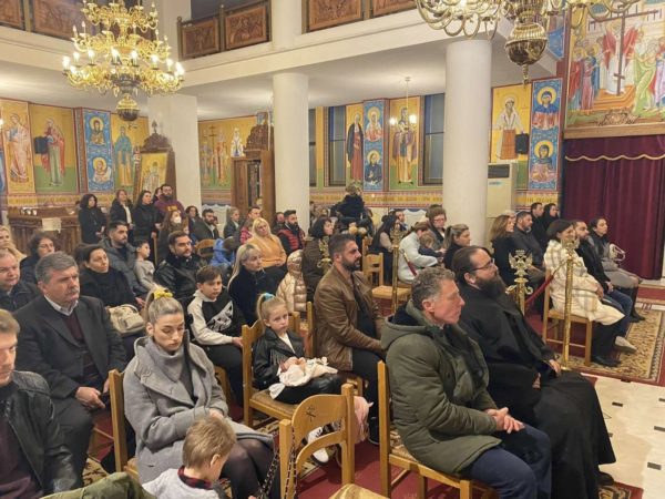 Μετά την ομιλία, παρετέθη δεξίωσις στο πνευματικό κέντρο του Ιερού Ναού και η χορωδία υπό την διεύθυνση του Πρωτοψάλτου του Ναού, κ. Ανδρέα Κοτοπούλη, παρουσίασε πρόγραμμα με παραδοσιακά τραγούδια της Μικράς Ασίας.