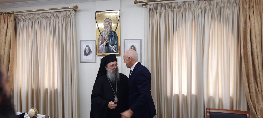 O Σεβασμιώτατος Μητροπολίτης Πατρών κ. Χρυσόστομος υποδέχθηκε την Πέμπτη 8 Ιουνίου 2023 στα γραφεία της Ιεράς Μητροπόλεως τον πρώην Πρωθυπουργό και υποψήφιο βουλευτή Αχαΐας με το ΠΑΣΟΚ-Κίνημα Αλλαγής Γιώργο Παπανδρέου.