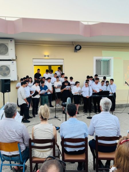 Στον αύλειο χώρο του Σχολείου, τα παιδιά παρουσίασαν εργασίες τους, που αφορούν το σύγχρονο γίγνεσθαι και την επικαιρότητα, η οποία απασχολεί την Πατρίδα μας και τον κόσμο και ανέγνωσαν κείμενα και ποιήματα, ενώ απέδωσαν άσματα τα οποία μας μετέφεραν σε καιρούς αλλοτινούς και ξεχωριστούς, στο χώρο της Ελληνικής Εκπαίδευσης και της Ελληνορθόδοξης κοινωνίας.