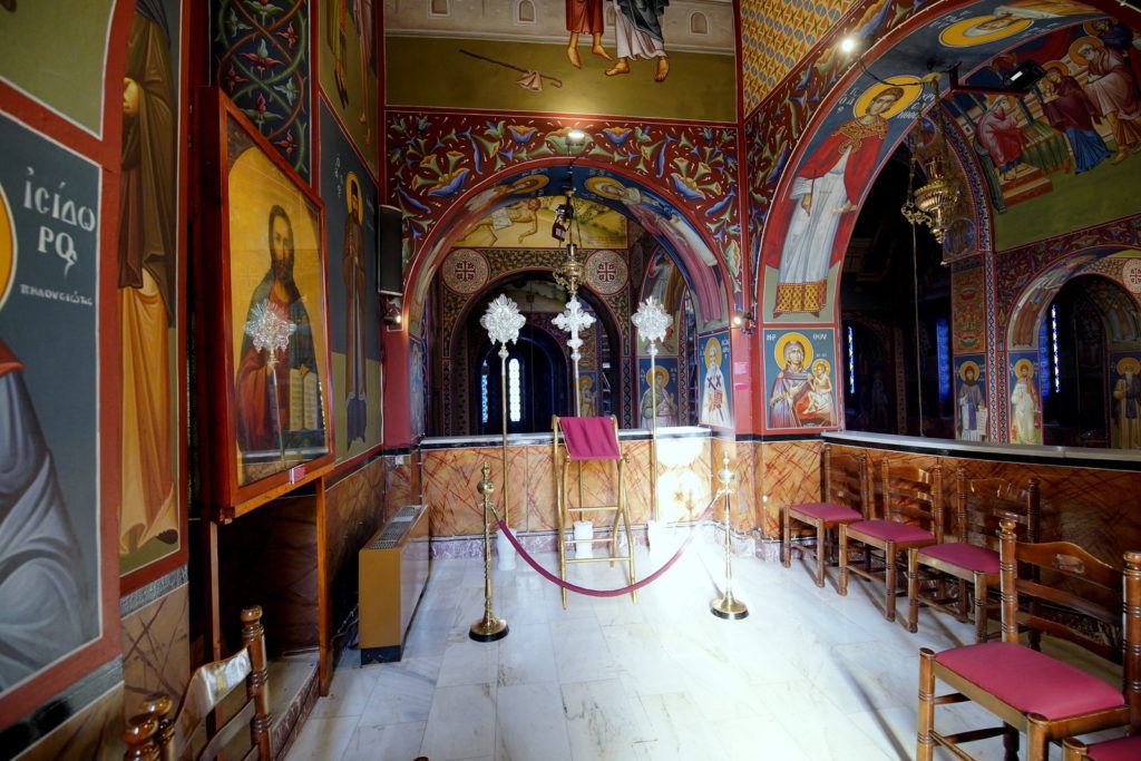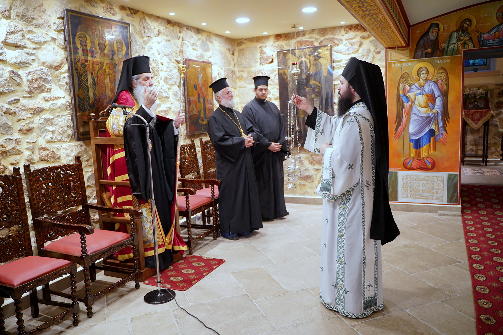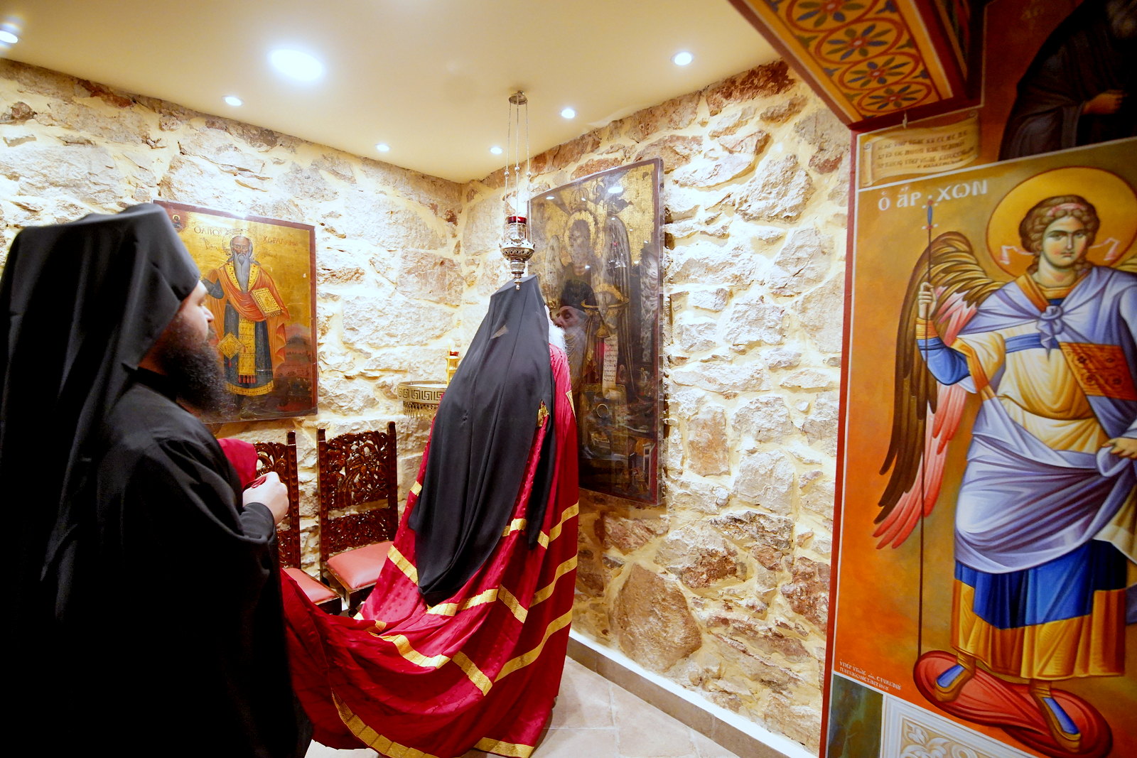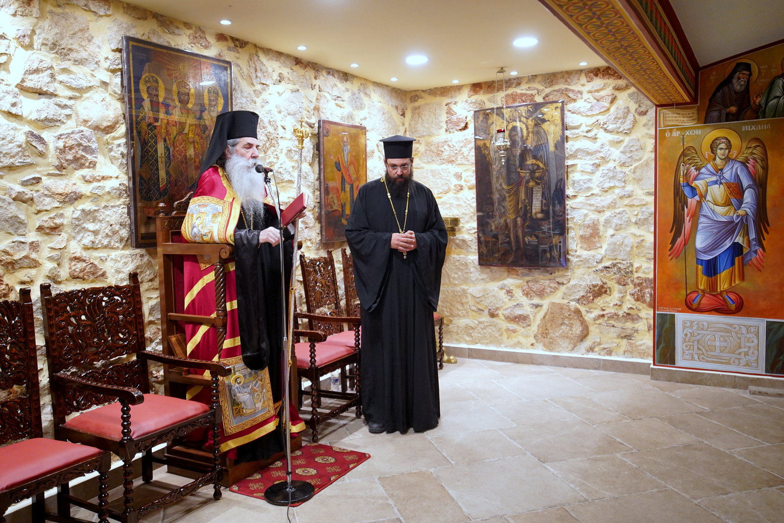 Κάνοντας αναφορά στην κατακόμβη, στο Ιερό Παρεκκλήσιο που τιμάται στον Άγιο Ιωάννη τον Πρόδρομο και στους νέους Αγίους της Εκκλησίας μας Πορφύριο τον Καυσοκαλυβίτη, Παΐσιο τον Αγιορείτη και Ιάκωβο τον Τσαλίκη, επεσήμανε πως στην Εκκλησία μας γινόμαστε όλοι «μέτοχοι και κοινωνοί της ακτίστου Θείας Ενεργείας και Χάριτος».