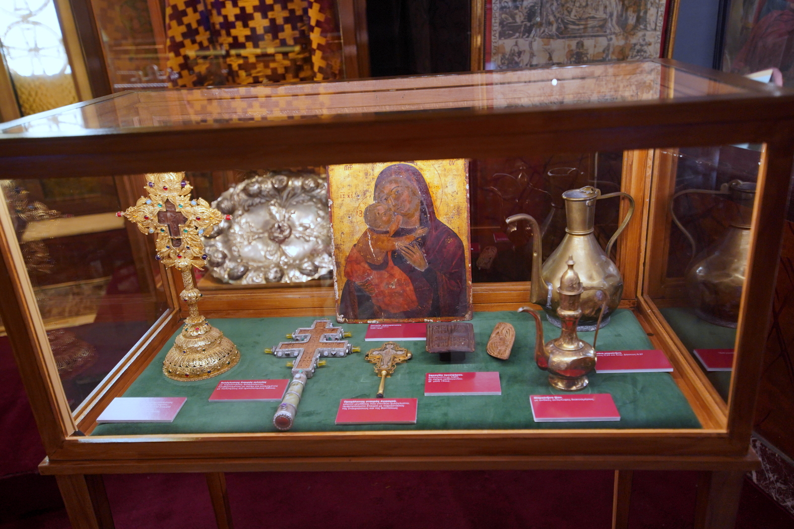 Ο Σεβασμιώτατος τέλεσε, επίσης, τον Αγιασμό Εγκαινίων του νέου κειμηλιαρχείου που βρίσκεται στον γυναικωνίτη του Ναού με εκθέματα Ιερά σκεύη, Εικόνες, άμφια και βιβλία.