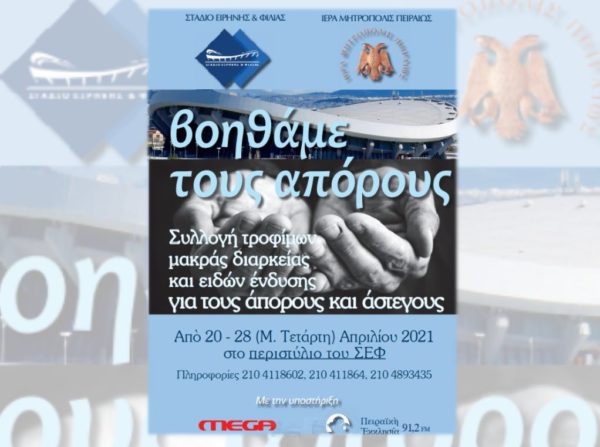 Η Ιερά Μητρόπολη Πειραιώς σε συνεργασία με το Στάδιο Ειρήνης και Φιλίας, οργανώνουν εκστρατεία αγάπης και προσφοράς με αποδέκτη κάθε άνθρωπο, ο οποίος δοκιμάζεται από την φτώχεια και την ανέχεια.