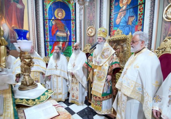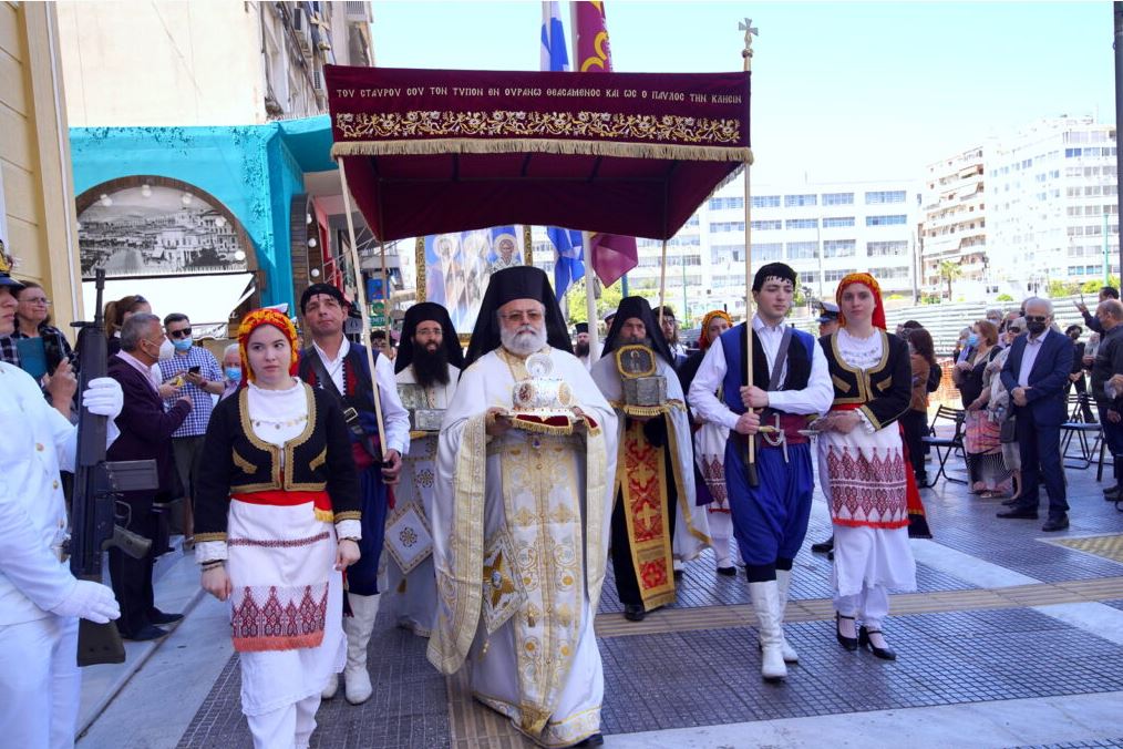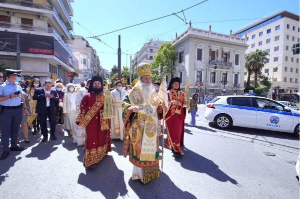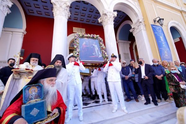 Ιερουργούντος του Σεβασμιωτάτου Μητροπολίτου Πειραιώς κ. Σεραφείμ τελέστηκε χθες Σάββατο 21 Μαΐου 2022 η Πανηγυρική Θεία Λειτουργία στον εορτάζοντα Μητροπολιτικό Ιερό Ναό Αγίων Κωνσταντίνου και Ελένης Πειραιώς, όπου τίθενται σε προσκύνηση τεμάχια Ιερών Λειψάνων των Αγίων Χαραλάμπους, Ιωάννου του Νηστευτού και Παρθενίου Επισκόπου Λαμψάκου, προερχόμενα από την Ιερά Μονή Αγάθωνος.