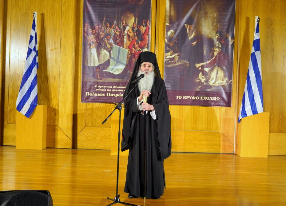 Τέλος, ευχήθηκε σε όλους τη Χάρη του Παναγίου Θεού και «να αυξηθεί η αντίστασίς μας απέναντι στα σκοτεινά δρώμενα του κόσμου της φθοράς. Απέναντι στα δημιουργικά περιπαίγματα που επιβουλεύονται την πνευματική μας ανεξαρτησία και τη δυνατότητά μας να μιμηθούμε και εμείς τους Μάρτυρες και τους Αγίους της πίστεως και του Γένους μας».