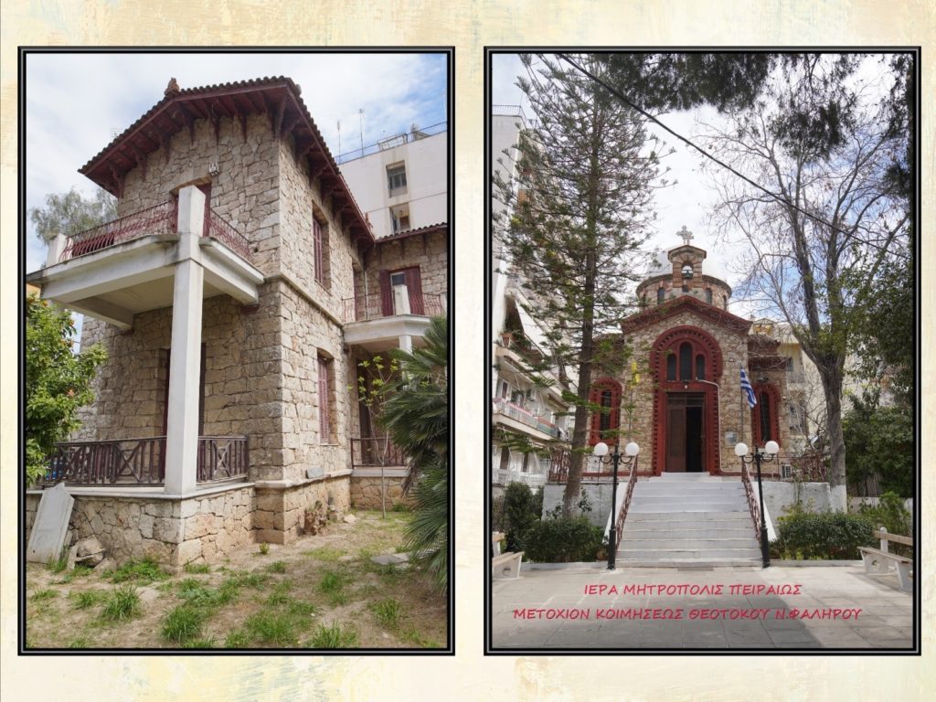 Το Νεοκλασικόν διώροφον Ακίνητον συνολικού εμβαδού 600τ.μ., κείμενον εντός οικοπέδου 1200τ.μ., συνενώθη μετά του Ι. Μετοχίου και αποτελούν πλέον ένα ενιαίον σύνολον, τη Νεά Ανδρώα Κοινοβιακή Ι. Μονή της Ι. Μητροπόλεως Πειραιώς Ευαγγελισμού και Κοιμήσεως Θεοτόκου Ν. Φαλήρου.