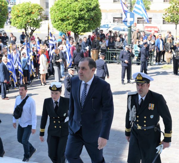 Ο Υφυπουργός Ναυτιλίας και Νησιωτικής Πολιτικής και Βουλευτής ΝΔ Α’ Πειραιώς και Νήσων, κ. Κώστας Κατσαφάδος, εκπροσώπησε την κυβέρνηση στην παρέλαση στον Πειραιά.