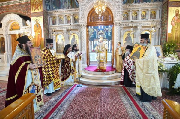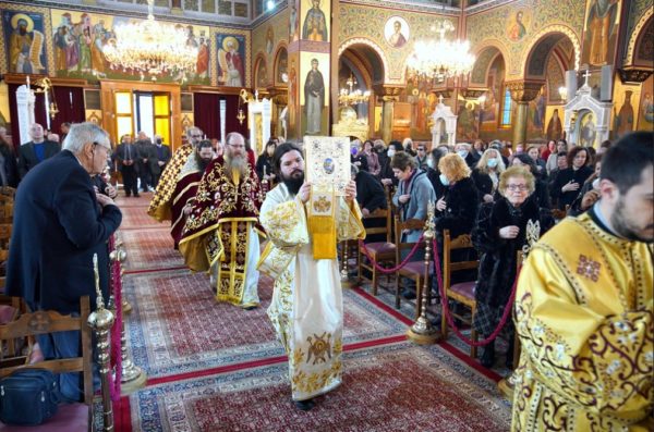 Προ της απολύσεως της Θείας Λειτουργίας του Μεγάλου Βασιλείου πραγματοποιήθηκε η λιτάνευση των Ιερών Εικόνων και η ανάγνωση του Συνοδικού της Ορθοδοξίας.